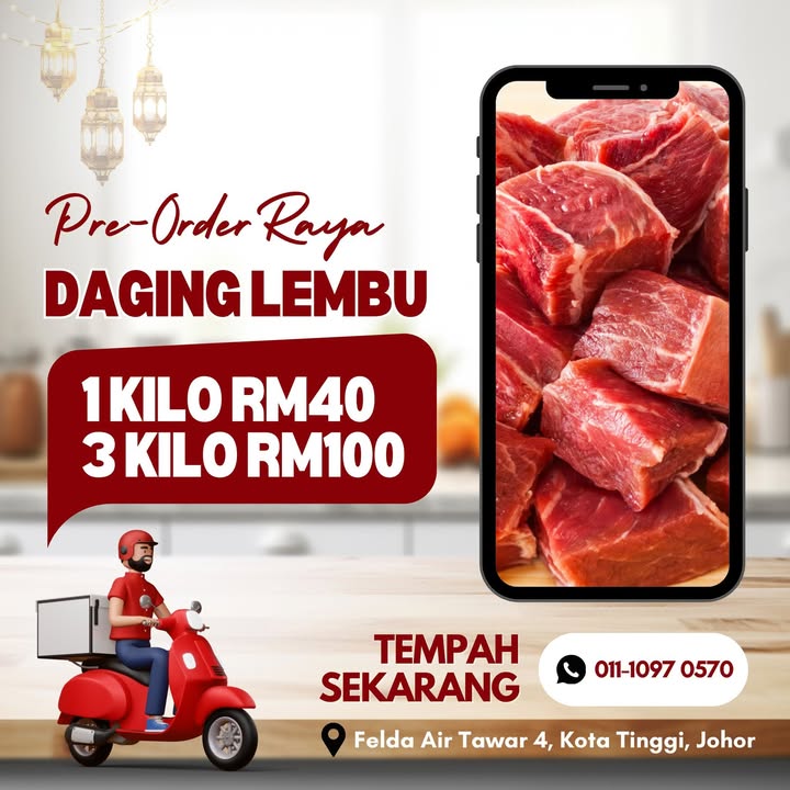 Setiap kali raya, yang selalu habis dulu - daging lembu. Customer lama biasanya tahu, nak dekat raya demand memang tinggi. Tahun ini kami open pre order lebih awal. Tak perlu berebut nak dapatkan d... Read More